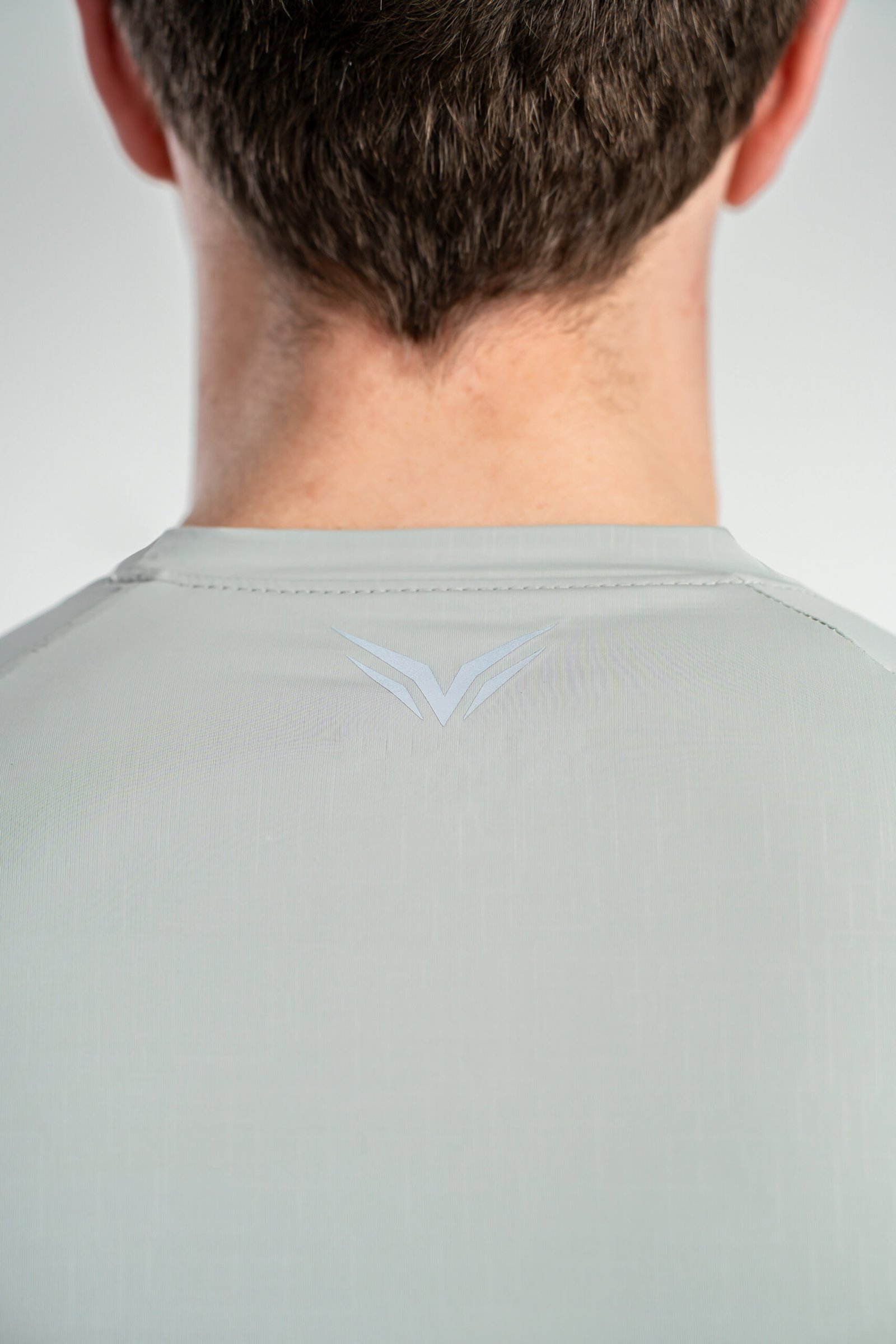 Clean. Fresh. Effortless. The Light Grey Tee Edition strikes the perfect balance between performance and everyday style. Its sweat-wicking, quick-dry fabric keeps you cool during intense workouts, while the modern light grey color delivers a sharp, versatile look you can wear beyond the gym. Designed with four-way stretch, it moves naturally with your body—whether you're lifting, running, or taking on the day. The tailored athletic fit offers a clean silhouette without sacrificing comfort. Minimal branding and a reflective logo give it an understated, functional edge. Lightweight, breathable, and built for all-day wear, this is your essential tee—ready for every rep, every step, every plan.